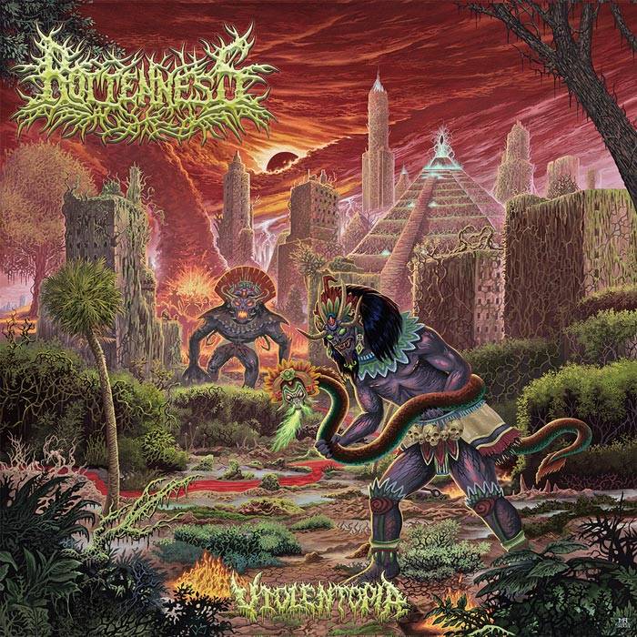 ROTTENNESS z Meksyku/USA powraca z długo oczekiwaną trzecią płytą. "Violentopia" to 13 wybuchowych utworów brutalnego death metalu połączonego z elementami grindcore'a, slam i okraszonego staroszkolnym ciężarem. To pierwsze duże wydawnictwo zespołu dowodzonego przez Jaleel'a Castillo oraz uzupełnionego o zupełnie nowy skład: Matt Johnson, Karl Schmidt, Ray Nevison oraz Matthias Joyce. W nagraniach gościnnie wzięli udział rownież muzycy PIG DESTROYER, CEPHALIC CARNAGE, ISOLATION IN INFAMY. Album zmiksował Rob Caldwell (CANNIBAL CORPSE, MUNICIPAL WASTE, DEVOURMENT), a za mastering odpowiedzialny jest Davide Billia z MK2 Studio (ANTROPOFAGUS, BEHEADED, BLASPHEMER, PUTRIDITY, SEPTYCAL GORGE).